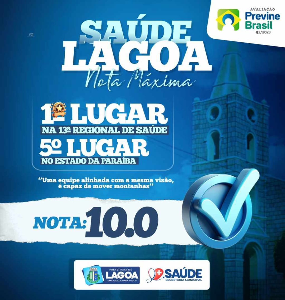 Com nota 10, saúde de Lagoa é destaque nos indicadores do Previne Brasil